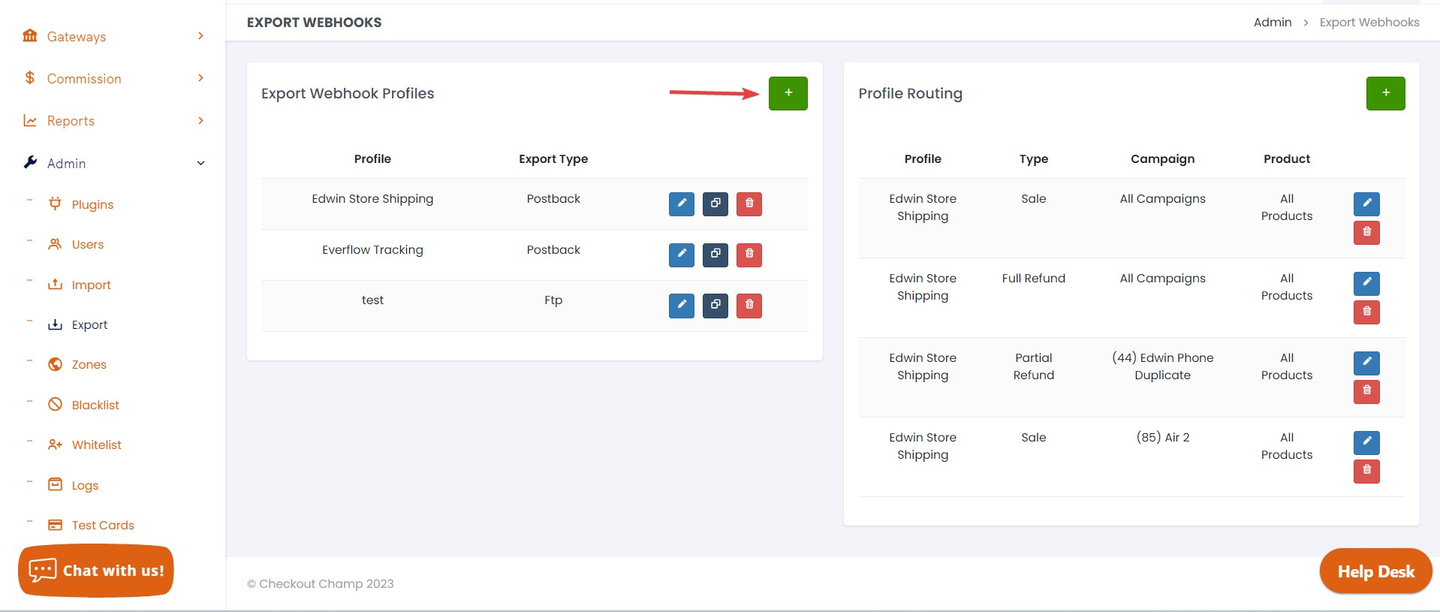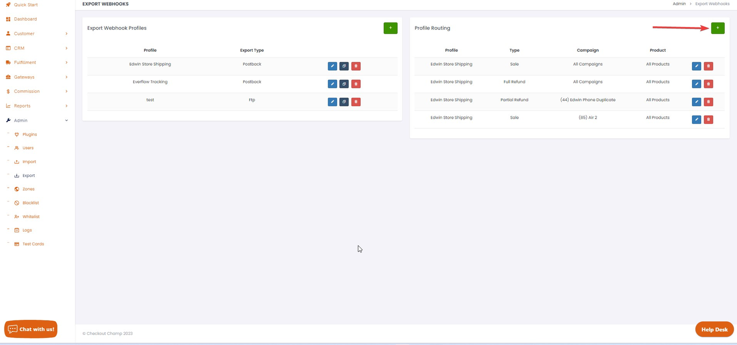Step 2: Create a New Webhook Profile by clicking the greenbutton.