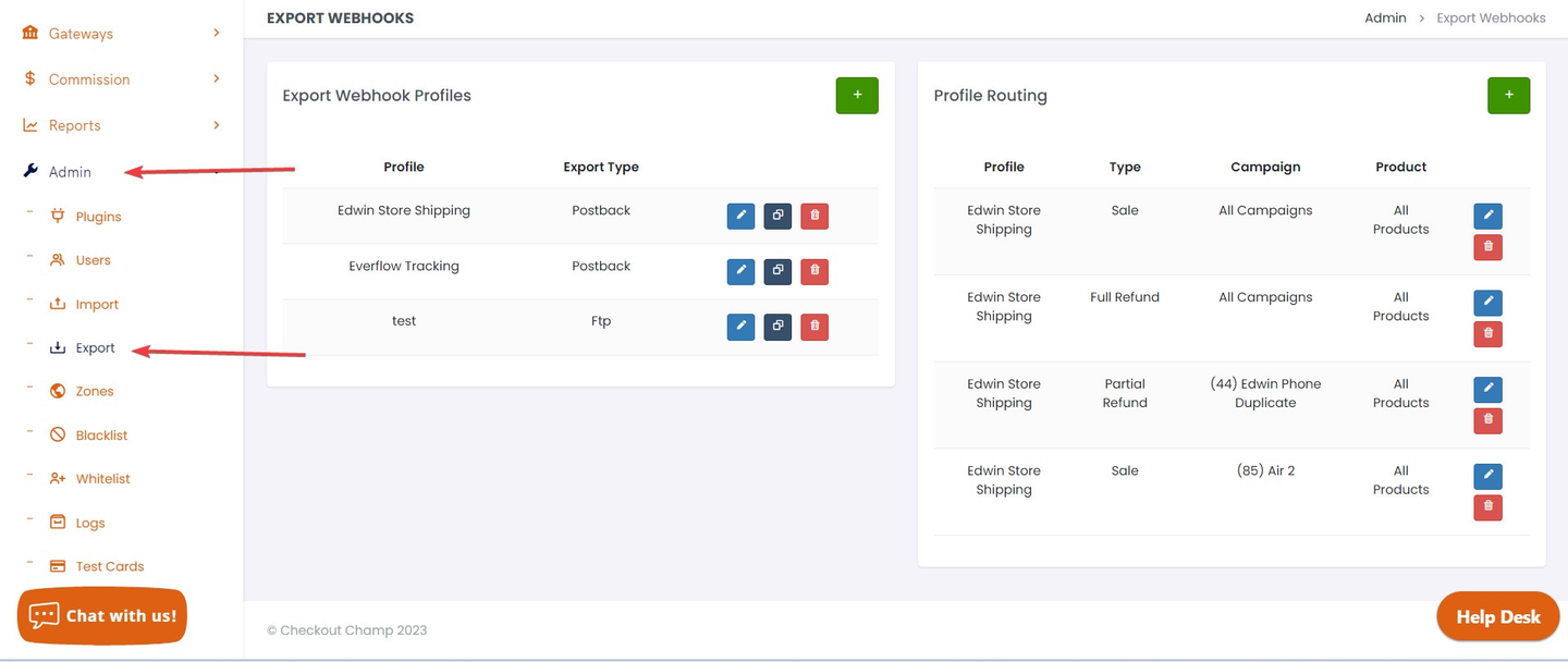 Please note that CheckoutChamp Test Card orders will not export through the webhook system.
