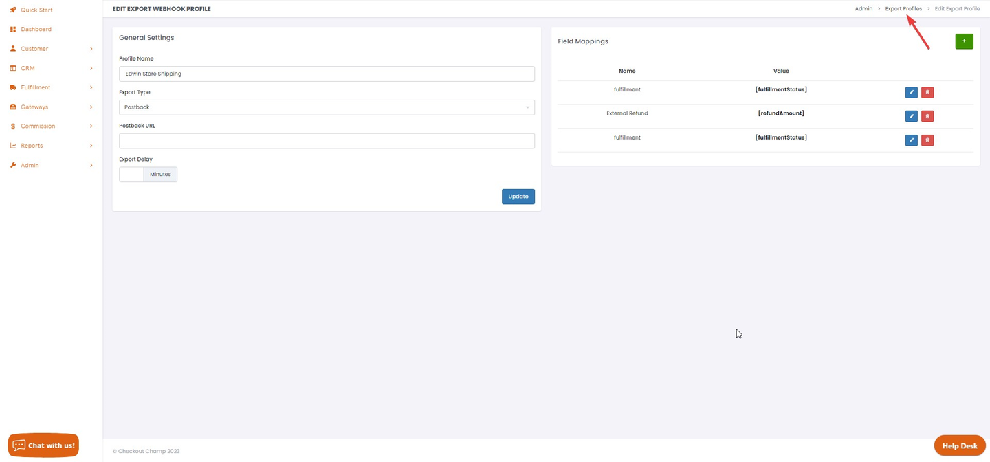 Export Profiles are used to send data to a Postback URL of FTP. This article will walk you though the configuration for an Export Webhook sending data to an FTP server.