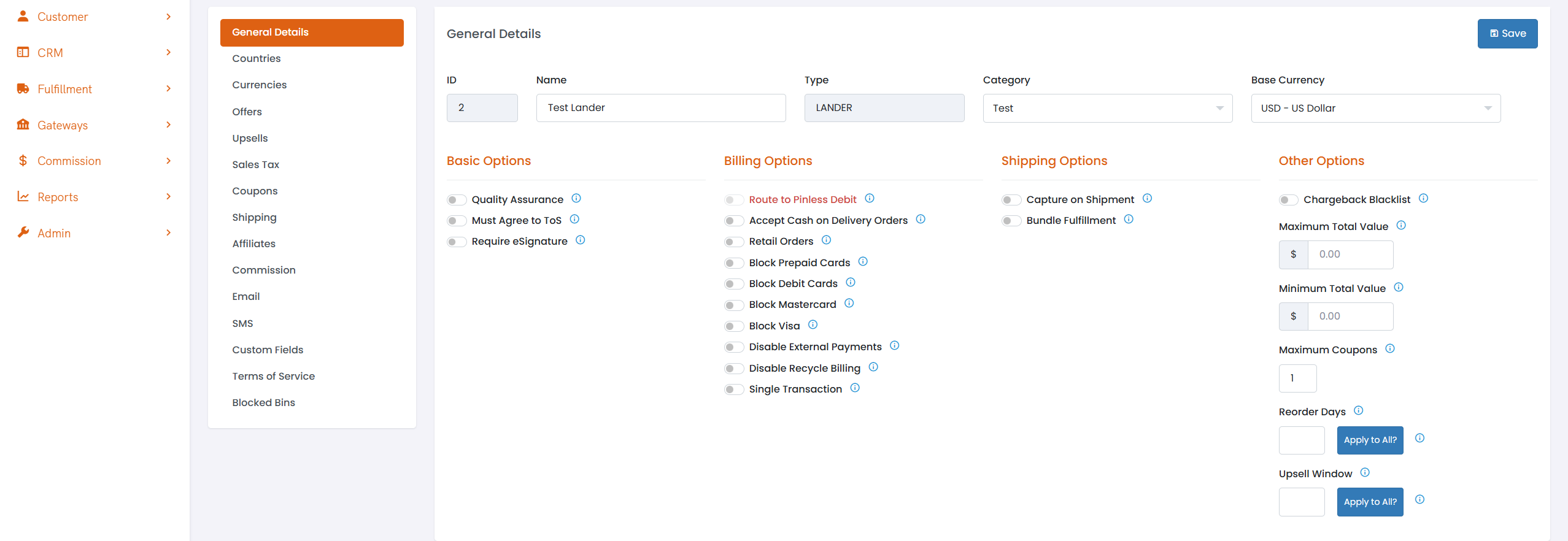 * **Quality Assurance** - CheckoutChamp's Quality Assurance system by percentage entered for secondary review. These Cards will be authorized at the time of sale, but not captured until the order is specifically approved through the QA system. Set desired % for QA. Default is 100% .