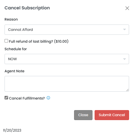 * **Next Successful Billing** - After the next successful billing cycle their Subscription will automatically cancel.