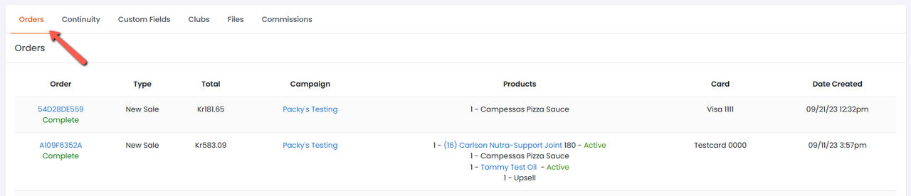 *Scroll* down on the customer’s profile to display the orders related to this customer: