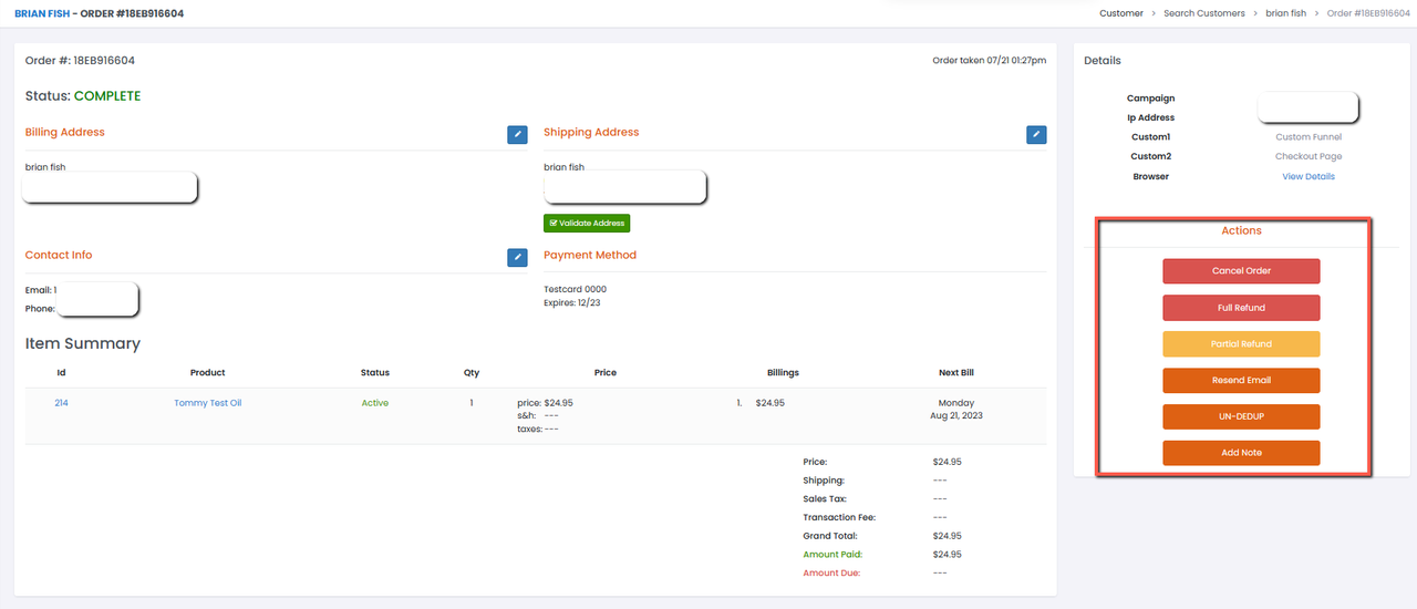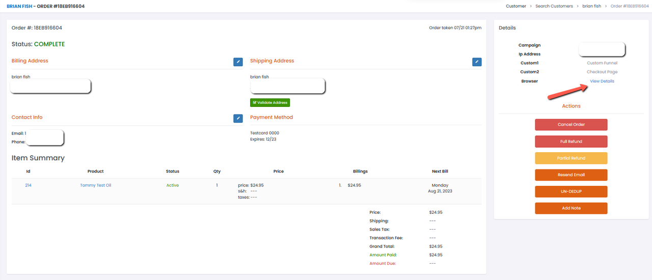 *Click* on the OrderId and it will bring you to the Order Summary page where you can: