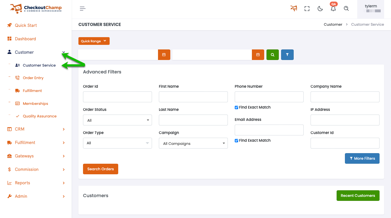 You can search by name, orderId, email address, phone number, etc.