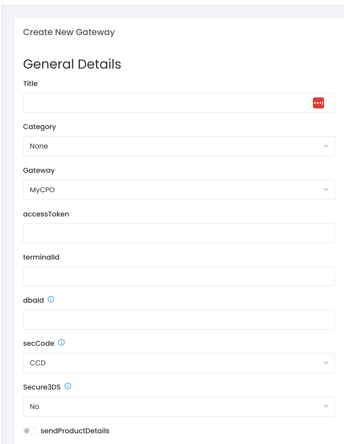 Specify your MyCPO account credentials along with other gateway configuration details and select <mark style="color:green;">**Create Gateway**</mark>.