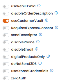* Enable "**Customer Vault**" by clicking the toggle button next to "**useCustomerVault**".
