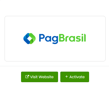 Go to **Merchants** → **Gateway Integrations** and activate the PagBrasil tile with the “**+ Activate**” button