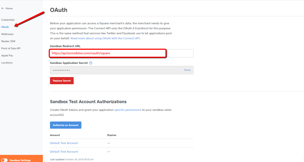 Navigate to the OAuth Section to obtain your **ApplicationSecret** and to set your **Redirect URL** which is <https://api.checkoutchamp.com/oauth/square/>