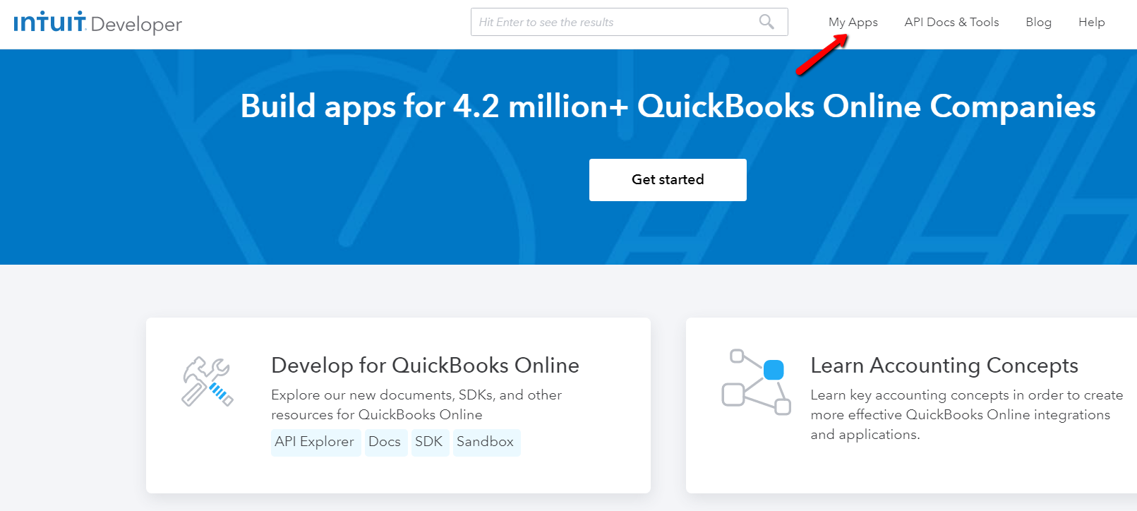 * [Log into your intuit developer account](https://developer.intuit.com/app/developer/homepage) and click **My Apps**