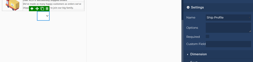 OpenBorder usage requires that shipping options be available in a select on the checkout page. Drag a select to the page and set Name = Ship Profile.