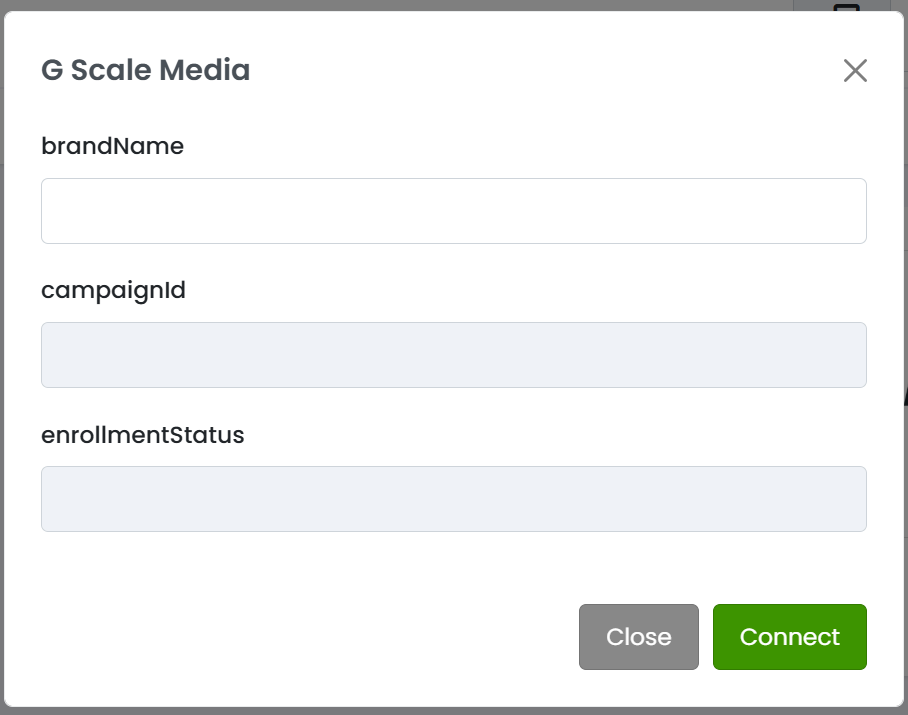 On the Activation Page, enter brandName to identify this plugin to G Scale Media. This value can be any value of your choosing. Press Connect.
