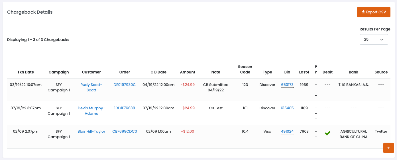This report is designed to show the individual chargebacks that have occurred within your CRM.