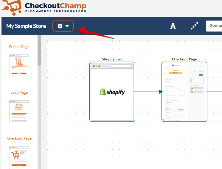 ### Step 2: Click the gear button on the top left to open Settings <a href="#boleto-checkoutchamp-step2-clickthegearbuttononthetoplefttoopensettings" id="boleto-checkoutchamp-step2-clickthegearbuttononthetoplefttoopensettings"></a>