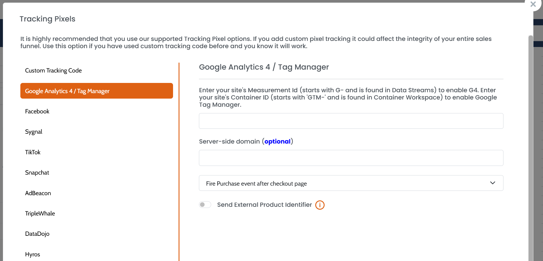 * If you're using a **GTM Web Container**, add a "GTM Web Container" client and enter your container ID
