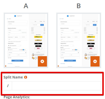 If you want to run a split test to try out what versions of your site works best, you can add a slug to the end of both URLs to better differentiate them for yourself. See [Creating a Split Variation](https://help.checkoutchamp.com/funnel-builder/creating-and-editing-funnels-pages/funnel-visualizer-and-page-builder/page-builder-2.0/page-building-tips/creating-a-split-variation) on how to do that. Once your splits are created, you will need to select the gear icon for each A and B variation inside the page settings to add the slug. **Remember to tab off the Split Name to save the slug**.