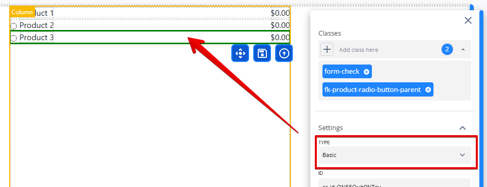 You may choose between two types of Product Radio elements in the element settings: Basic or Advanced
