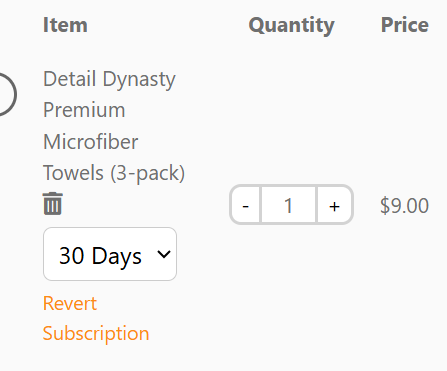 When the button to upgrade to a subscription is pressed the element will be hidden on the page. Any items that are shown in the order summary will show a revert back so the client can easily switch the product back to one-time.