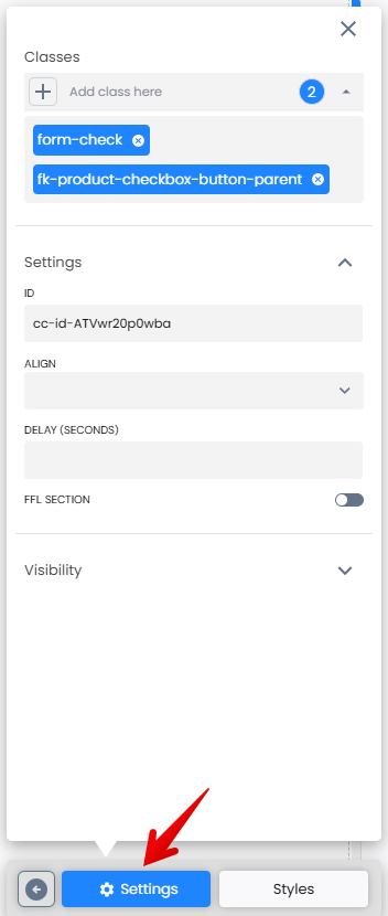 To set a product or product variant to the checkbox, click on the checkbox and open the element’s settings within the Style Manager. You can also set a checkbox to be preselected when the page loads by enabling the Checked option.