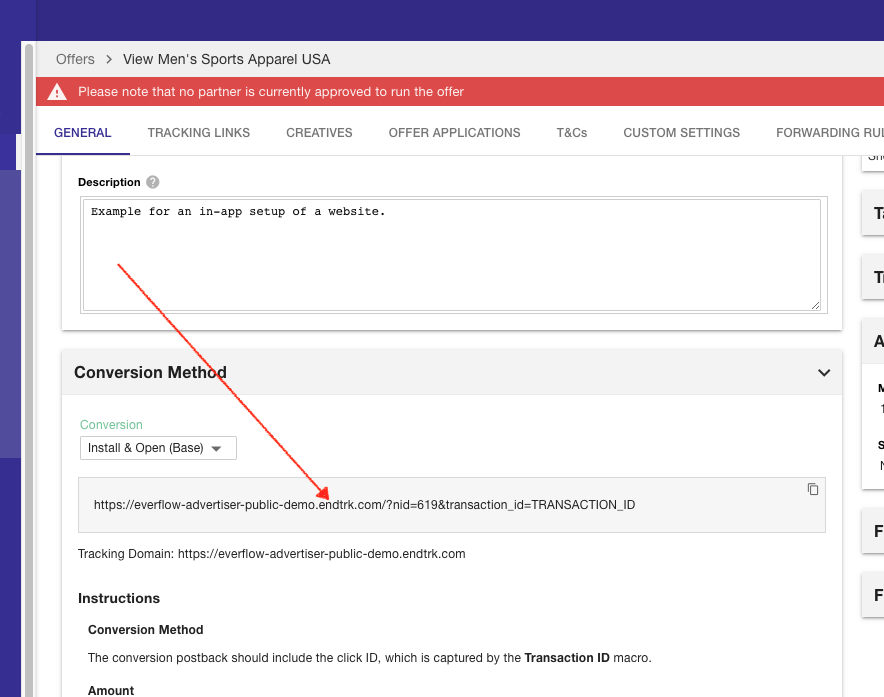 When you are done setting up and adding the offer, copy the postback URL from the offer page.